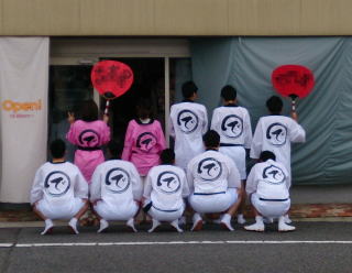 | Glimmer ドライTシャツ 00300-ACT (ブラック) + シルクスクリーン (ホワイト) 背中のデザインはインパクトのある鯛をあしらい、屋号を縦に配置することで「和」のイメージで作成してみました。 |